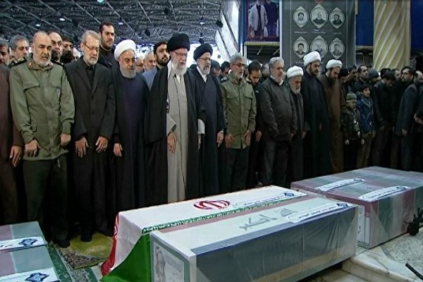 The ritual was held at the University of Tehran and adjacent streets where a huge funeral procession is underway for General Soleimani and other martyrs of the attack.Senior Iranian officials including the president, parliament speaker, judiciary chief, and military commanders, as well as people from all walks of life attended the event.